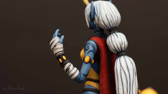 Итак, это была моя первая полностью законченная фигурка человека, вернее не совсем человека)). По этому лицо получилось всё же не очень, опыта в таких вещах совсем не хватало, да и в целом косяков было достаточно. Но я старалась, учиться всё же никогда не поздно, и я надеюсь что со временем, пусть по чуть-чуть, но мой навык лепки всё же понемногу растёт).