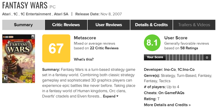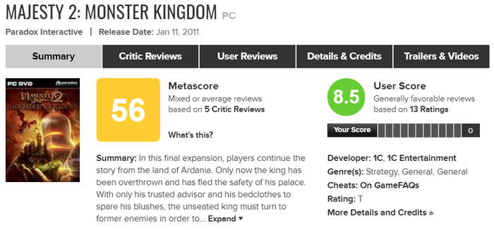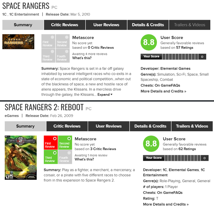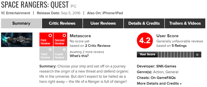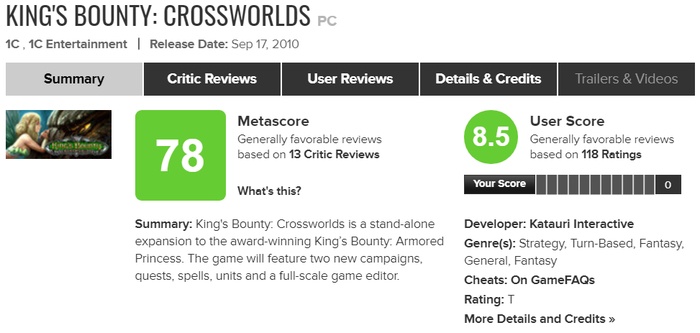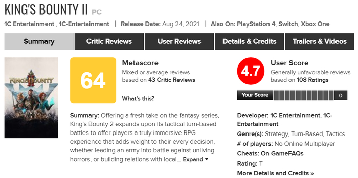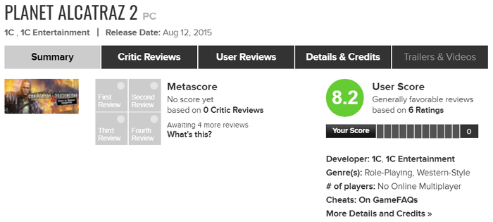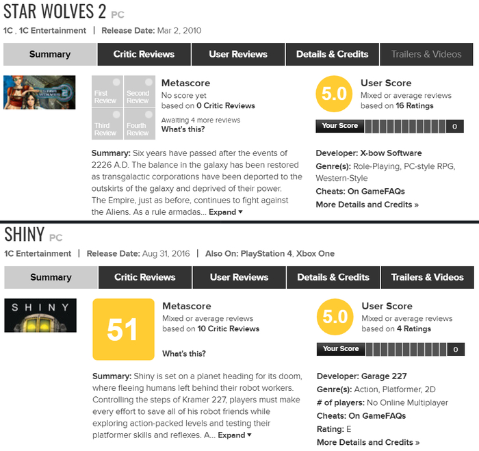 Топ-10 лучших и худших игр от 1C ENTERTAINMENT по версии пользователей сайта Metacritic