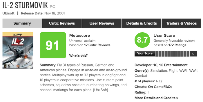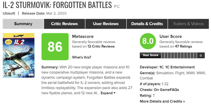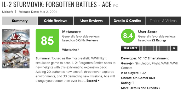 6. IL-2 Sturmovik: Forgotten Battles - Ace (PC) - 8.4