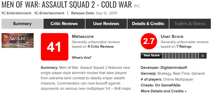 2. Men of War: Assault Squad 2 - Cold War (PC) - 2.7