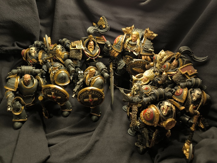 Мои основные личные заскоки: болтер со шнековыми магазинами по типу ПП "Бизон" либо северокорейских АК, форма шлема, символы на поясе и наколеннике. Вооружение: вышеупомянутый болтер, силовое копьё, пилоножик.