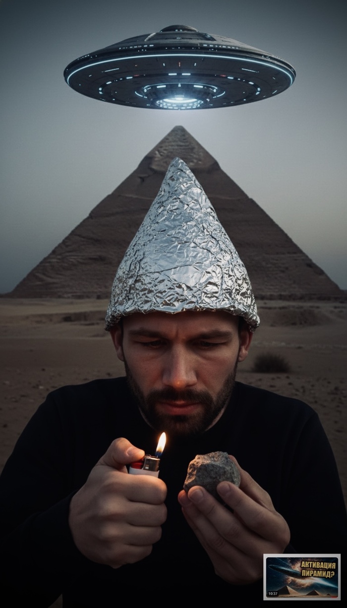 А что если ты, реально, пойдешь в пустыню поджигать пирамиды, а конспирологи со спутника тебя спалят и выпустят новое видео на ютюбе: "Смотрите! Он идет! Он познал истину! Он и есть - Мегалит! Камень с зажигалкой активирует пирамиду!"
