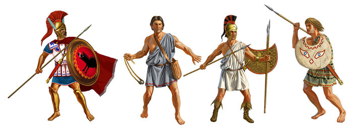 По многим причинам. Прежде всего, как вы помните, спартанская армия была «обществом равных». То есть все спартанцы были тяжеловооружёнными гоплитами – а лёгкой пехоты и конницы у Спарты было очень мало, и вся она состояла из союзных племён (не спартанцев).