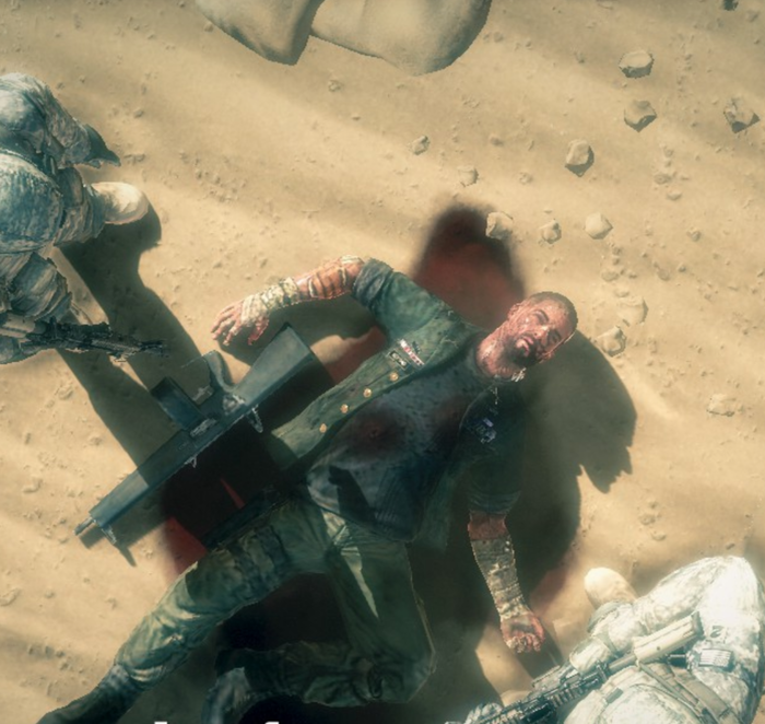 Позже, бродя по Дубаю, мы наткнемся на трупы отступников батальона. Так же тут мы найдем рацию, по которой с нами иногда будет общаться Конрад. "А как же так, он же пристрелился". Ах да, ведь наш Уокер потихоньку сходит с ума. Под конец игры уже не понятно, что правда, а что иллюзия.