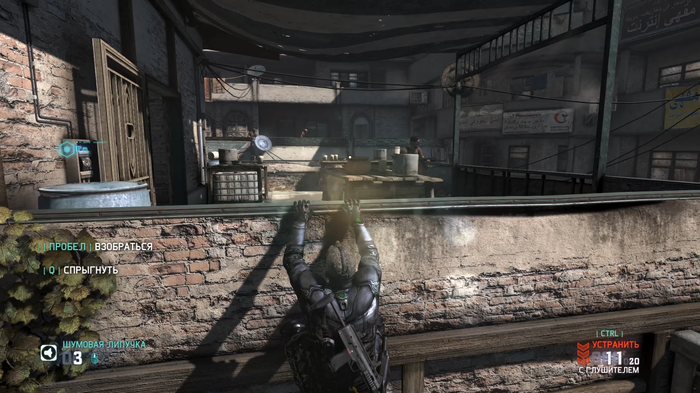 Локаций в игре много, есть как открытые, где предстоит много прятаться за укрытиями или лазать по стенкам и крышам в духе Assassins Creed, так и в помещении, где играть интереснее, но стрельба становится еще более тяжелой. Объясню почему: камера приближается настолько, что спина Сэма Фишера загораживает пол экрана и прицелиться из за этого очень проблематично. Можно однако просто подойти к цели и нажать E, и тогда произойдёт "тихое убийство". Но если врагов поблизости много - игрока легко заметят, и уже придётся отбиваться по хардкору. Соперники отнюдь не глупые, замечают тебя, слышат, а если увидят - стреляют на поражение. С таким врагом сражаться интересно.
