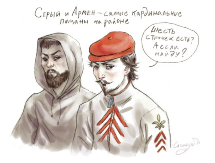 Одно плохо – это не увеличивает цельность текста. Когда автор называет любого персонажа и сразу же: «Кстати, о нём рассказывали вот что…» - и потом ещё три страницы баек – это немножечко сбивает. Так что текст вышел хаотичным, перегруженным и довольно трудным для чтения. И если бы не образ Ришелье – читать, может, и не стоило бы.