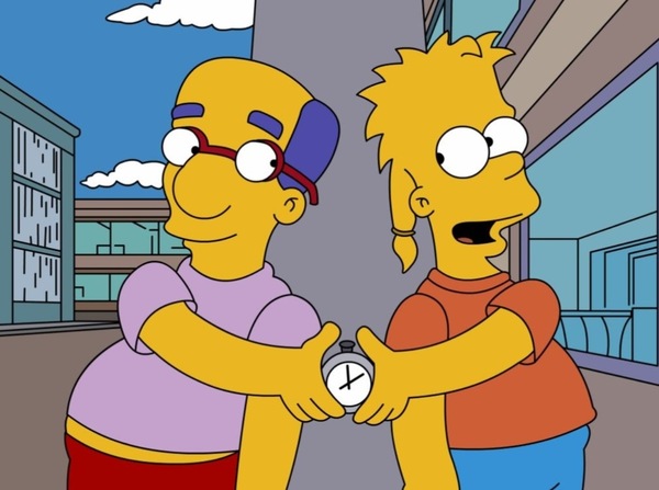 Вот небольшой пример: сезон 23, серия 12 под названием «Мо идет из грязи в князи». Нам показывают две истории, которые происходят в одно и то же время. В первой Барт и Милхауз ссорятся, потому что Барт относится к своему другу как к чему-то само собой разумеющемуся и не особо ценит его чувства. Реалистичный сюжет, которому, в принципе, можно было бы посвятить целый эпизод.