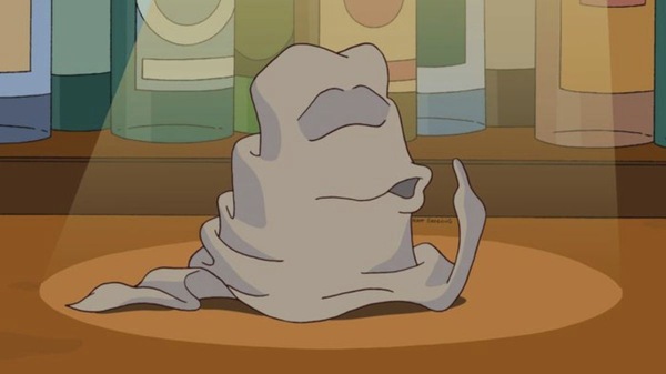 А потом вдруг на тряпке появляются глаза и рот, и она всю серию рассказывает нам свою трагичную историю. Оказывается, что это не тряпка, а старинный гобелен, который предсказывает будущее. Сотни лет он переходил из рук в руки, принося своим хозяевам несчастья, пока, окончательно истрепавшись, не оказался в руках снежного человека, а тот не подарил его своему сыну — Мо. Приехали.
