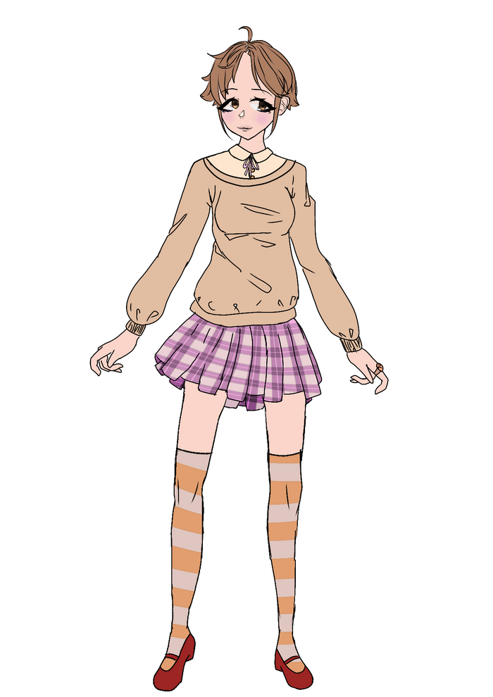 Микаса Рей. Одна из главных героев(покажу пока только главных) ей 13 лет, рост у неё очень высокий. Приезжает в село, из-за тяжёлого финансого положения семьи. Умеет делать игрушки из шерсти и красивые реалестичные маски животных, на чём потихоньку зарабатывает. Очень любит свою младшую сестру Юну(её дизайн пока не придуман), является сильной личностью, в ходе сюжета не сдаётся. Однако, она сама виновна, что полезла в лес.