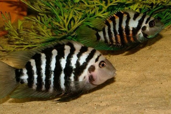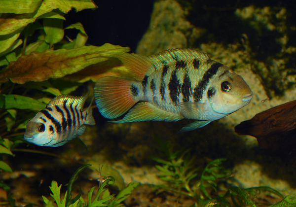 Как и Дискусы , Чернополосые Цихлазомы могут кормить мальков эпителиальным секретом , но все чернополоски которые были у меня как правило либо вбрасывали облако корма в мальков , либо взбалтывали корм находившийся на дне.