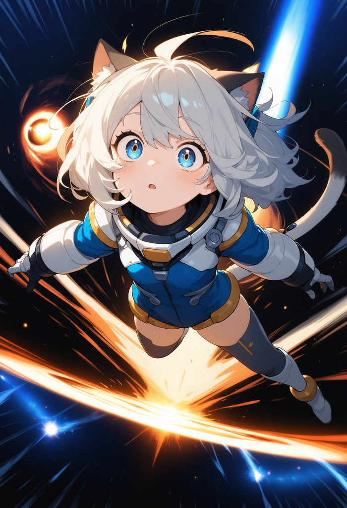 Промт: A stunning view from deep space. In the foreground, a glowing comet with a bright blue ion tail streaks across the frame, its icy nucleus shimmering. The background reveals a breathtaking cosmic panorama: a swirling purple nebula with star-forming regions, a ringed gas giant with pastel-colored bands, and several exotic exoplanets - one with glowing cracks, another covered in crystalline oceans. Distant star clusters twinkle, while a nearby asteroid reflects colorful starlight. The composition uses vivid colors and dramatic lighting to create a sense of wonder and scale.