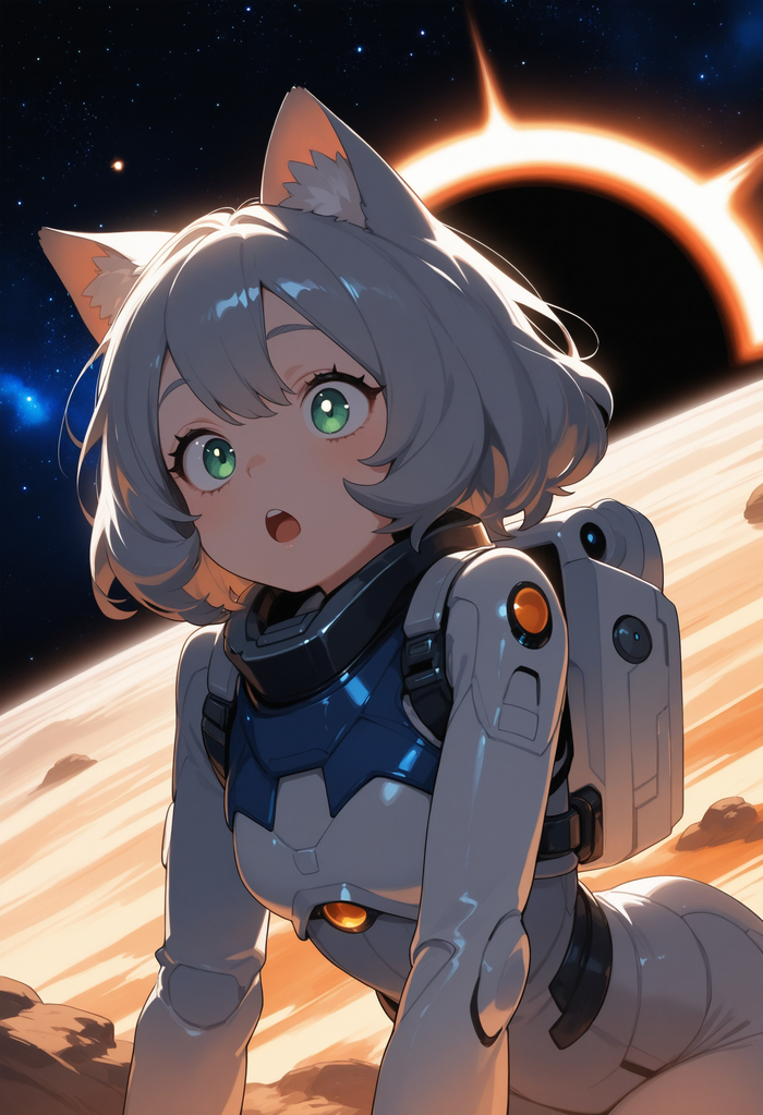 Промт: A stunning cosmic view from the surface of an alien planet. The sky is filled with vibrant nebulae in shades of magenta, teal, and gold, stretching across the starscape. Two massive moons hang low on the horizon, casting soft colored light over jagged crystal formations and glowing alien flora. The air shimmers faintly, and distant rings of a gas giant curve across the sky. Sci-fi fantasy, highly detailed, vivid colors, surreal and majestic.