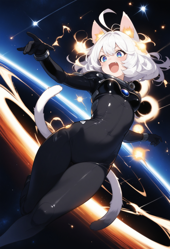Рыжая девушка, 21 год, улыбается, в белом боди, на фоне космоса.