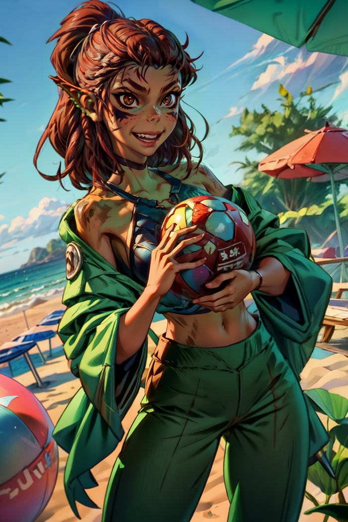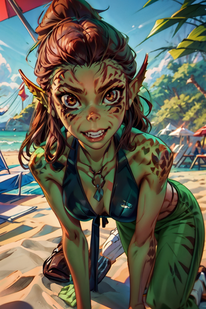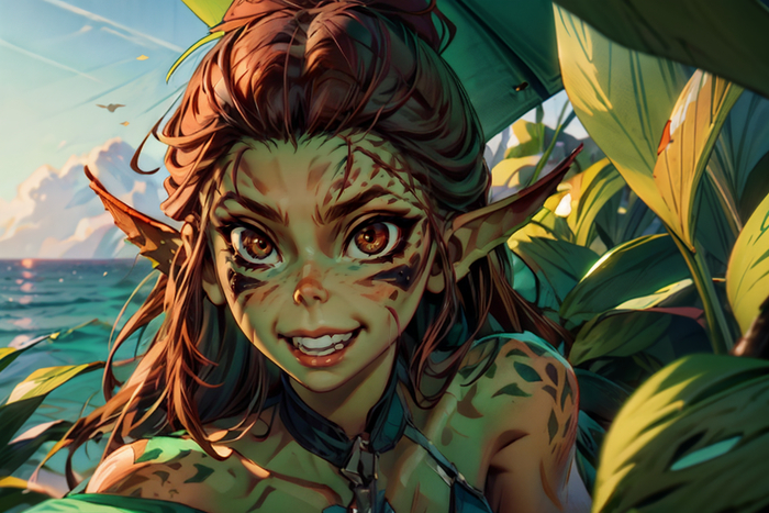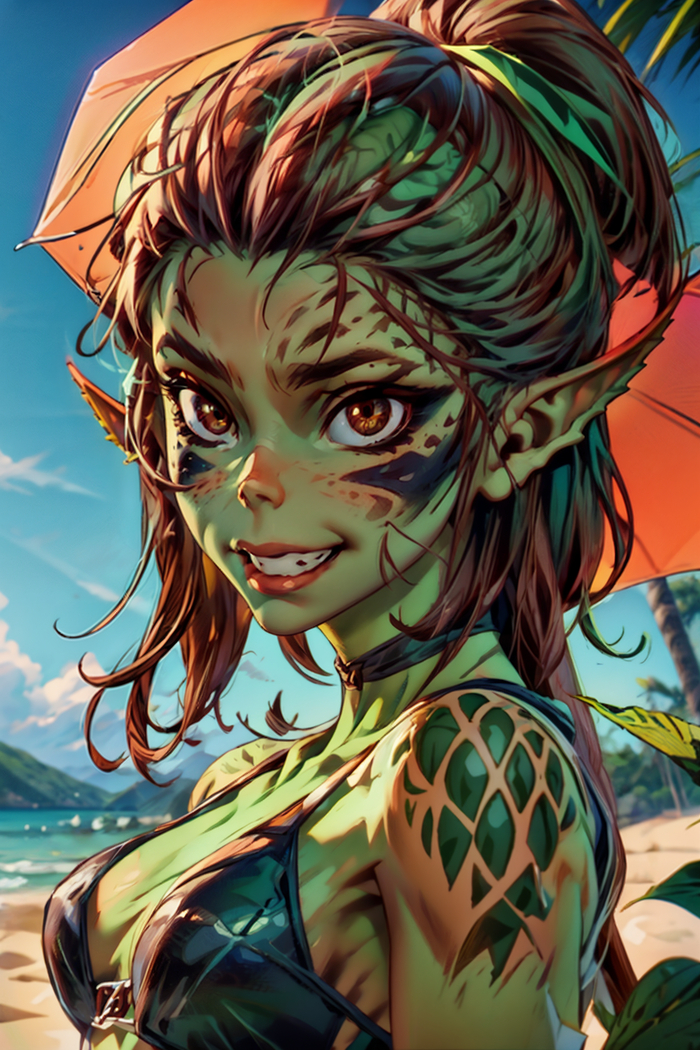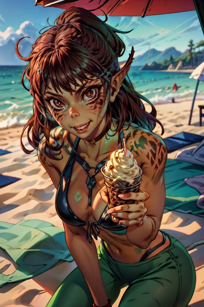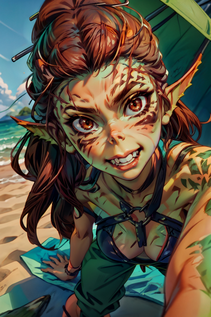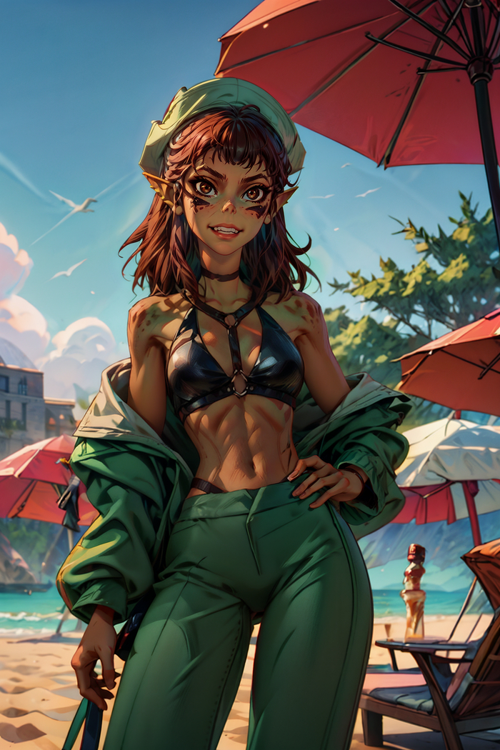 Лазель из Baldurs Gate 3 в аниме стиле отдыхает на пляже, очень милый фан-арт