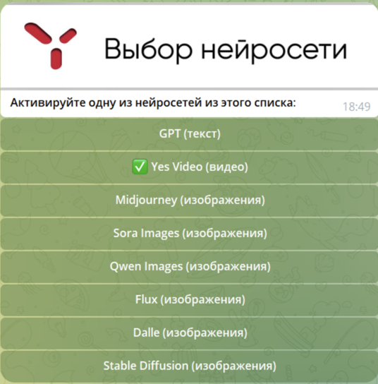 Переходите в бот Sora Images (работает без VPN, удобен для смартфонов) и тестируйте различные модели.
