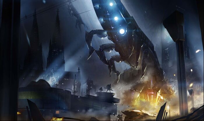 - Флот из тысяч кораблей-форпостов, каждый размером с город (пример: Предвестник). Корабли способны регенерировать и адаптироваться.