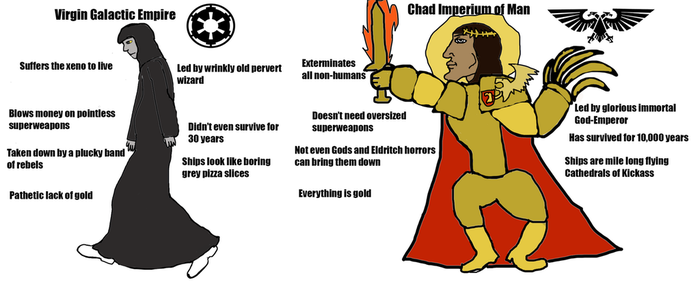 Решил и я внести свою лепту в межгалактический холивар и пофантазировать на тему кто кого: Империум Человечества из Warhammer 40000 или Галактическая Империя из Звездных Войн.
