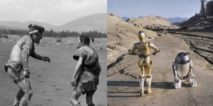 Знакомый сюжет, не правда ли? Собственно, Лукас никогда не скрывал, что хотел перенести «Трёх негодяев в скрытой крепости» в космические декорации.