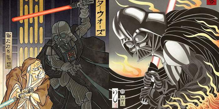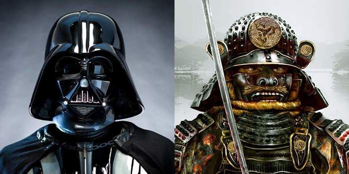 Но не только Куросавой исчерпывается японское влияние в голливудской космической киносаге. Изначально Дарт Вейдер был просто генералом на службе императора и не носил устрашающей маски. Она появилась лишь в силу того, что злодей должен был как-то преодолеть космическое безвоздушное пространство во время абордажа корабля принцессы Леи. Художник Ральф Макуорри основывался на картинке японского самурайского шлема, принесённой ему Лукасом. Но затем шлем Дарта Вейдера приобрёл черты германского «штальхельма», напоминая и императорскую Японию, и нацистскую Германию одновременно.