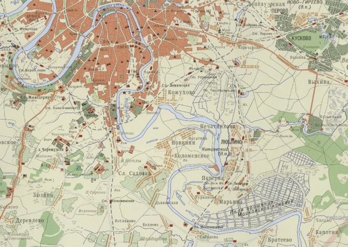 Ну и закончим путешествие в районе музея-заповедника "Коломенское". К сожалению, далее фотографий на территория современных районов Братеево и Капотня того периода просто нет.