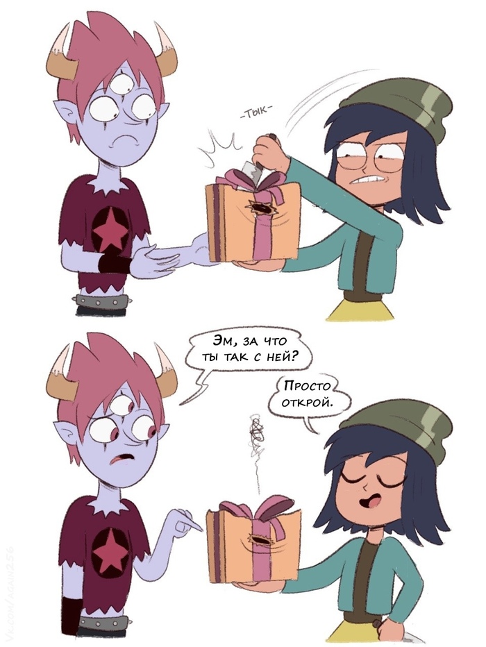 145 Toshizo52 1 год назад Комиксы Держи подарочек, рогатый... ^___^ Показать полностью 4 Tom Lucitor Janna Ordonia Star vs Forces of Evil Арт Moringmark Мультфильмы Комиксы Длиннопост 1 1 Ещё 0