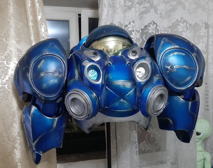 Итак мы добрались до финала, долгострой наконец то завершился )) На самом деле текста может быть очень много, но я постараюсь выделить ключевые и интересные моменты. После прошлого поста (6 часть) когда вроде было уже все готово, я не спешил все доделывать ввиду переезда в новый город, рабочих проблем и ремонта нового жилья. Да и думал что я почти готов. Я никогда так не ошибался )) Когда пришло подтверждение моего участия на стенде Близзард я немного зашевелился и понял что еще фронт работ очень неплохой, после прошлой примерки у меня отвалились обе руки, не было вообще электрики и шлемный отдел был совсем сырой... Вообщем за пару недель я через не хочу засел в мастерской чтоб устранить эти моменты. Скажу лишь что тестирование механики, электрики и всего остального было за день до выступления в небольшой комнате где я смог потоптаться, погонять подшлемник туда сюда и настроить свет.