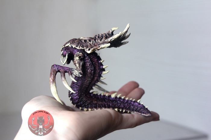 Гидралиск изготовлен вручную, высота 7,5см, использовала материалы: проволока, полимерная глина, бархатный пластик, акрил, защитный лак