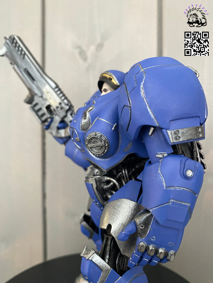 Высота 13,5 см (с учетом оружия - 16 см), печать на elegoo saturn смолой elegoo water washable, ручной покрас красками vallejo.