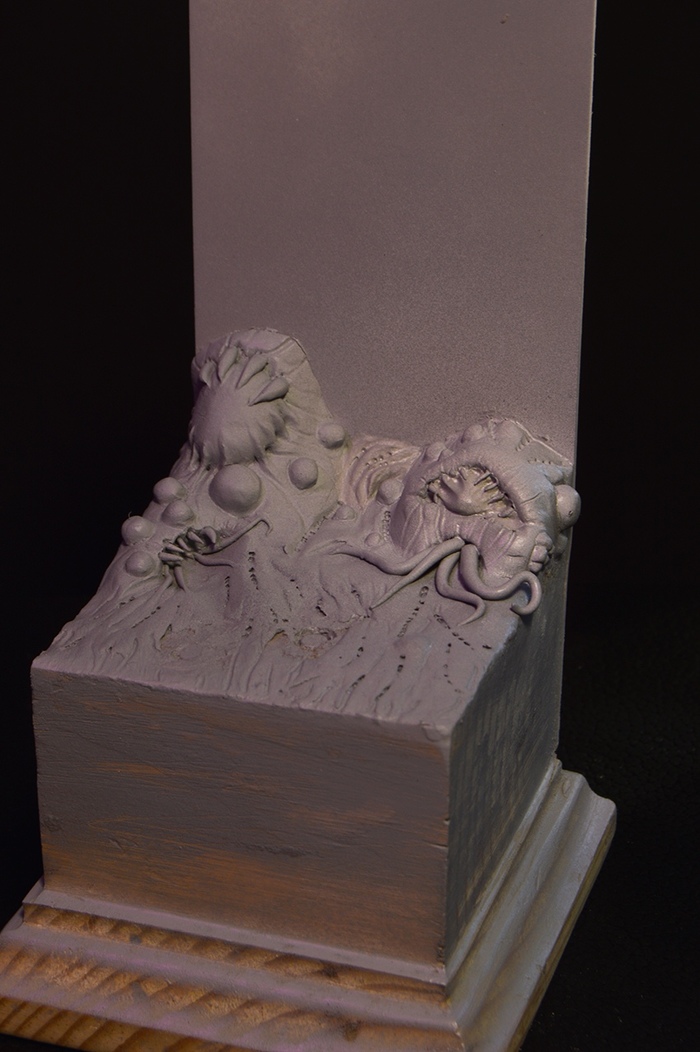 Миниатюра почти завершена, осталось нанести финальные штрихи. Но что за миниатюра без хорошей подставки? Надо бы взять немного глины и слепить что-то противненько-атмосферное, в стиле зергов. :)