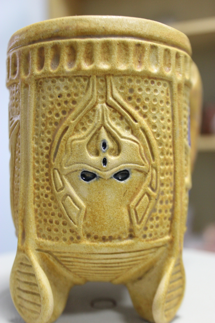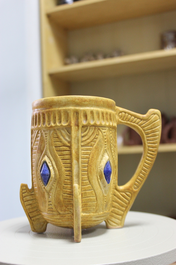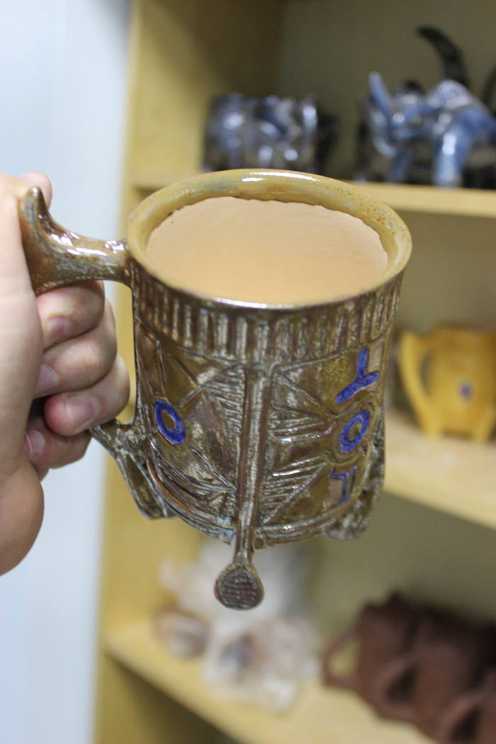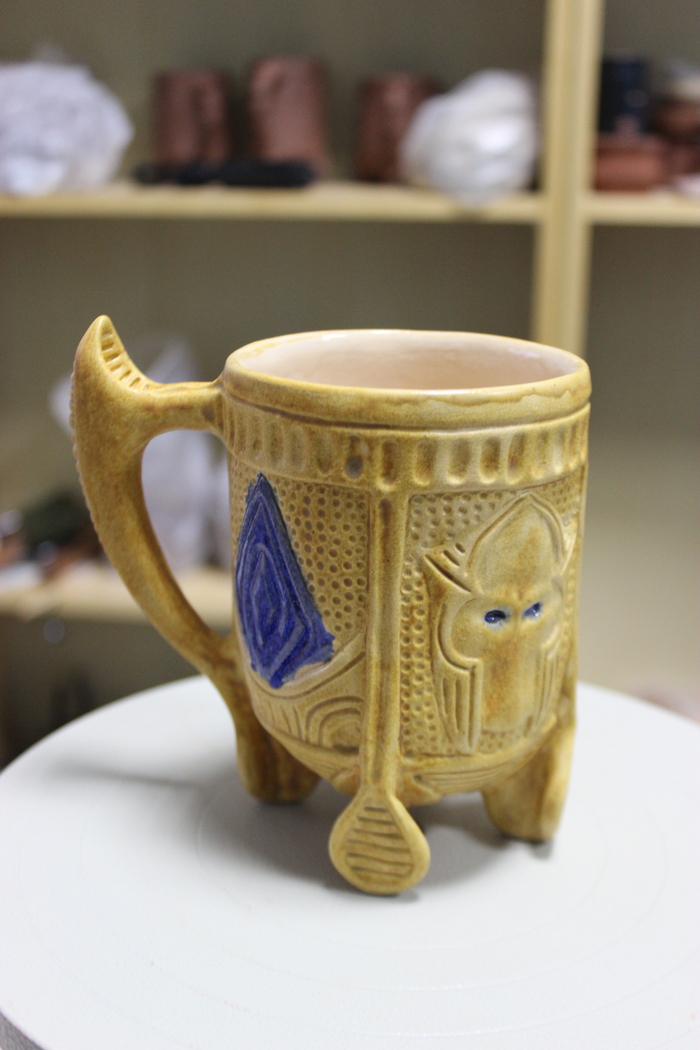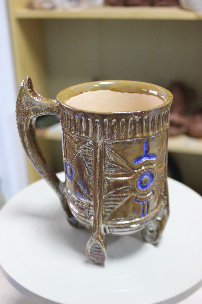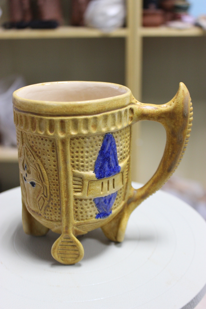 Третья кружка на 400 млл., хоть и хороша по форме, но подвела синяя глазурь. Растеклась, зараза...