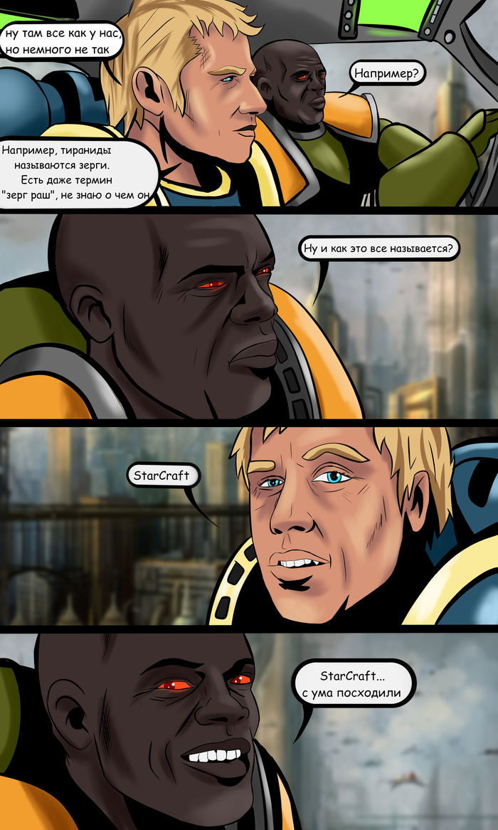 1279 Zakia Warhammer 40k Воздушная кочка 7 лет назад Показать полностью 3 [моё] Wh Humor Кроссовер Warhammer 40k Starcraft Tracer Криминальное чтиво Комиксы Юмор Длиннопост