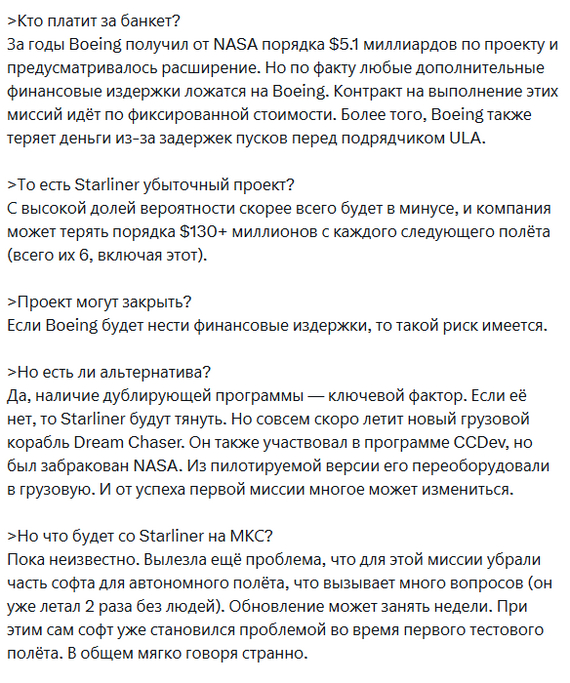 Последняя претензия увеличила общий убыток Boeing по Starliner примерно до 1,85 миллиарда долларов. Растущие убытки вызывают вопросы о том, сможет ли Boeing когда-либо получить прибыль от Starliner и не решит ли вместо этого прекратить его разработку.