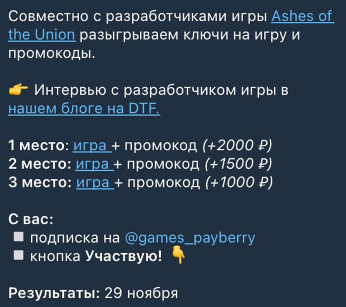 А так чуваки тоже зажали акцию на осеннюю распродажу, но зато разыгрывают НН игру со смешанными отзывами и 3 пополнения Стим. Зато даром!