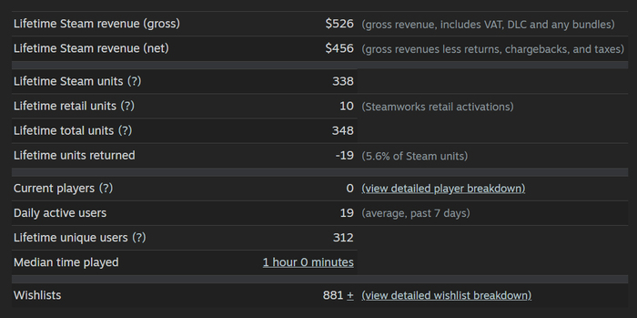 На момент запуска у Toffee Cats было всего ~250 вишлистов. Для успешного инди старта нужно минимум 7 000–10 000. А инди хиты которые качественно проводят маркетинг, имеют своё комьюнити и давно разрабатываются стартуют с 100 000 и более вишлистов.