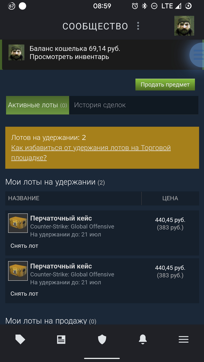 Я обратил внимание на свой инвентарь в Стим, оказывается я слегка богат. Кейсы и предметы продать я конечно же не смог, потому, что: