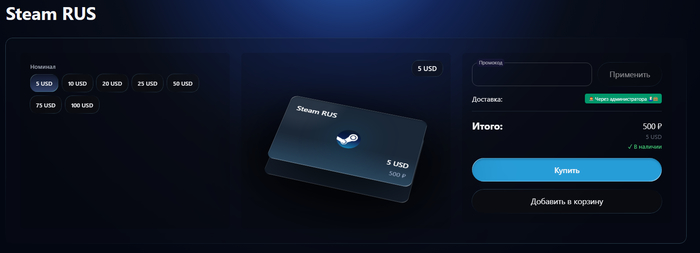 Подходят тем, кто хочет провести оплату без экспериментов. Это наиболее предсказуемые способы оплаты Стим в текущих условиях. Если задача — быстро понять, как оплатить Стим в России без отказов по карте, этот метод чаще всего даёт стабильный результат.