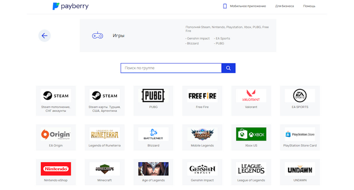 Способ схож с оператором Tele2, но комиссия более усредненная. Осуществить пополнение можно сайте оператора и в мобильном приложении «Мой Билайн» в разделе «Оплаты услуг» в категории «Развлечения». Ищем в поисковике «Steam» и вписываем необходимую сумму.