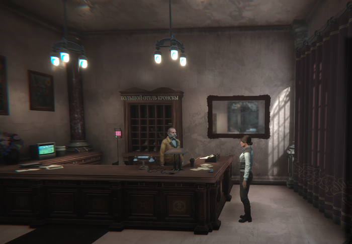 В теоооооории, можно было бы объяснить это сочетанием нехватки ресурсов и желанием "погрузить игроков в старую-добрую" Syberia. В какой-то степени это даже работает, потому что сразу после таких роликов ты видишь качественную проработанную графику в локациях, и в голове действительно возникает мысль "ха, а работу с игрой провели действительно большую". Но должного долгосрочного эффекта это не производит. Слишком уж много длинных роликов в игре, чтобы возникало внутреннее возмущение и вопрос...