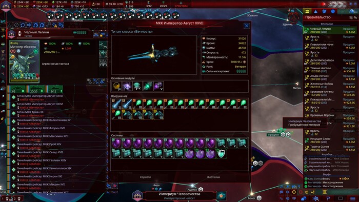 Правильно, 12 флотов в каждом из, которых были по три титана и тьма прочих кораблей, под бессмертием...