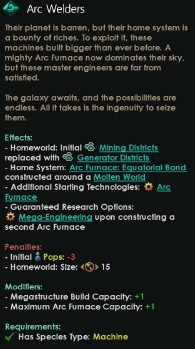 При создании машинной империи с новым дополнением вы первым делом обнаружите новые «исторические черты». Эти черты, стоящие 0 очков, позволяют расширить предысторию вашего вида и определить его первоначальное предназначение.