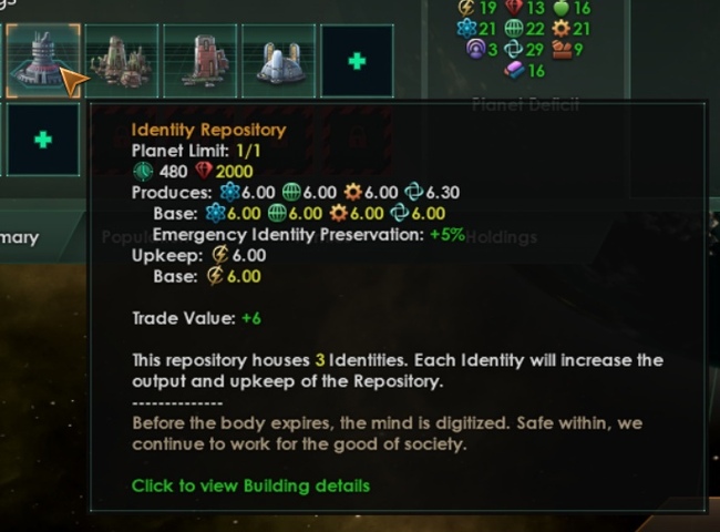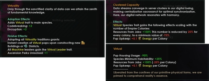 Чем больше колоний вы имеете, тем слабее будет ваша черта «Виртуальность» и тем больше будет её содержание.