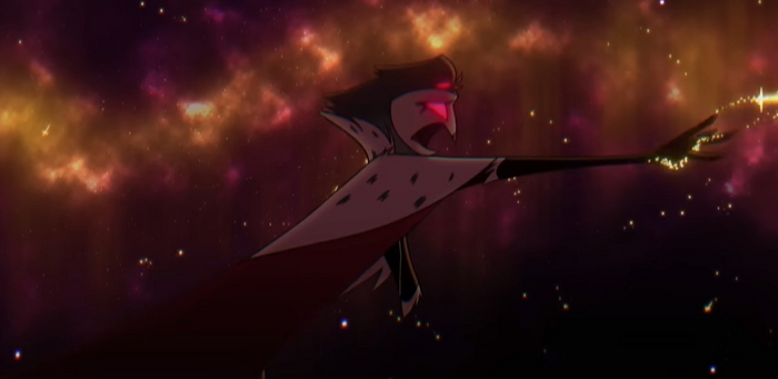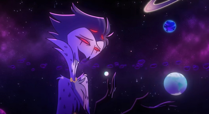 Он будет терпеливо ждать, когда Блитц будет готов открыться и не станет отдалятся, как это делал Блитц. Все что нужно Столасу это просьба остаться, тогда он мог бы выслушать Блитца и прислушаться к нему дав свою поддержку. Ему нужно всего пара слов. В клипе он последний раз дотрагивается луны, но не может тянутся дольше и падает, при этом никак не препятствуя падению. Все что Столас делает – разворачивается лицом к луне, к ее свету глядя на нее в последний раз, в попытках не упускать из виду этот свет Столас и сам погружается во тьму. Блитц буквально единственный свет в жизни Столаса. Мы вновь оказываемся в кабинете принца Гоэтии, по его щеке стекает слеза, он застыл в попытке дотянутся до макета вселенной над головой, как тянулся к луне, к Блицу. Вскоре он оседает и опускает руки подкладывая ее под голову и погружаясь в печаль, двери кабинета закрываются. Все это невероятно трогательно,