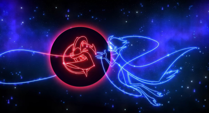 Далее нам постепенно показывают великолепный арт, на котором Столас парит на фоне полной луны печально и немного с тревогой глядя в сложенные ладони, рядом парит гримуар. На моменте «Let me hold you…» в его руках появляется цветок. Символично, ведь это желтый нарцисс. На языке цветов он указывает на признание в чувствах, буквально говорит «ты мой свет», а также указывает на чувства без ответа. Этим цветком Столас как бы сообщает о своих чувствах Блицу. В распевке поется «позволь мне обнять тебя, прижать к себе и быть рядом, я так хочу слышать твой голос…» что также отсылает нас к значению цветка.