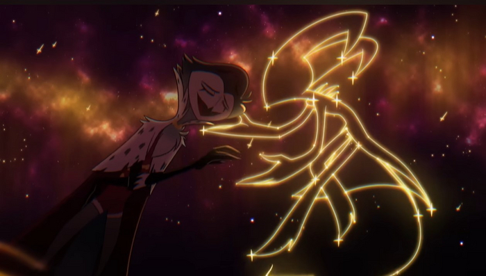 Столас тоже боится своих чувств, а также боится признаться в них сделав их правдой, а не просто мыслями. Он боится потому что не знает, что будет, не знает, что Блитц чувствует к нему и как на их и без того напряженное общение повлияет это признание. Столасу не нужен никто другой, поэтому, когда Блитц его отвергнет, он будет разбит и опустошен, ведь все в чем он нуждается – Блиц. В клипе Столас падает на колени опускаясь на поверхность воды. Его голос дрожит, он плачет, и его слеза падая превращается в звезду. Это невероятно трогательная сцена, то как дрожит голос принца Гоэтии буквально втыкает в сердце нож.