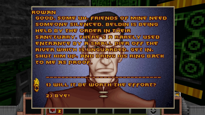 Честно говоря, вдаваться в какие-то детали абсолютно не хочется. Их много. Тут и там появляются какие-то интересные моменты. Разработчики определённо выжимали что могли из движка Doom, а это вроде как именно он и был. И с точки зрения 1996 года, когда Strife вышел, это было за гранью представимого. Да, System Shock был раньше, но там не было «мирных» зон и живых людей, с которыми можно было пообщаться. Да, в Hexen были головоломки, а инвентарь давал куда больше тактических опций. А в Killing Floor были вообще FMV, раскрывавшие сюжет — но с ними нельзя было общаться.