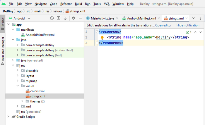 4. Откройте файл AndroidManifest.xml , расположенный в папке AndroidManifest.xml