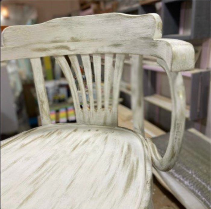 верхняя часть стула: спинка, подлокотник, белая краска с золотистой патиной