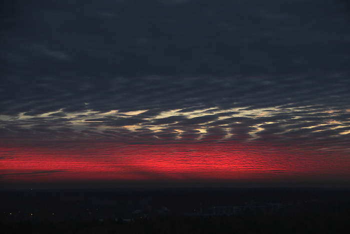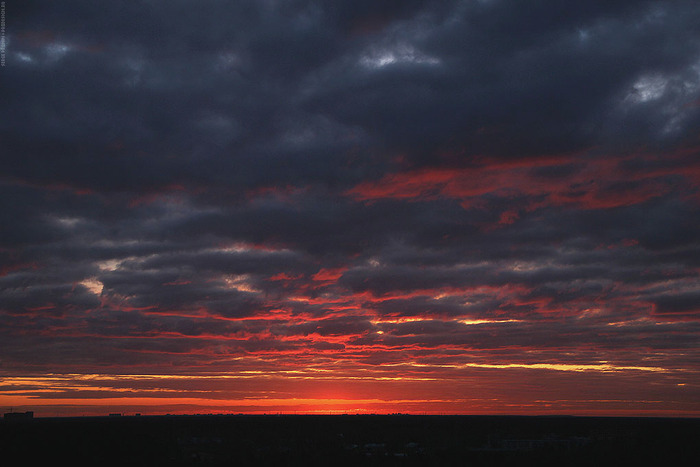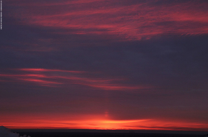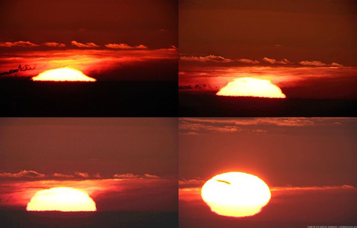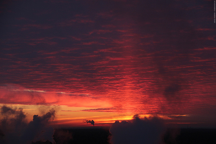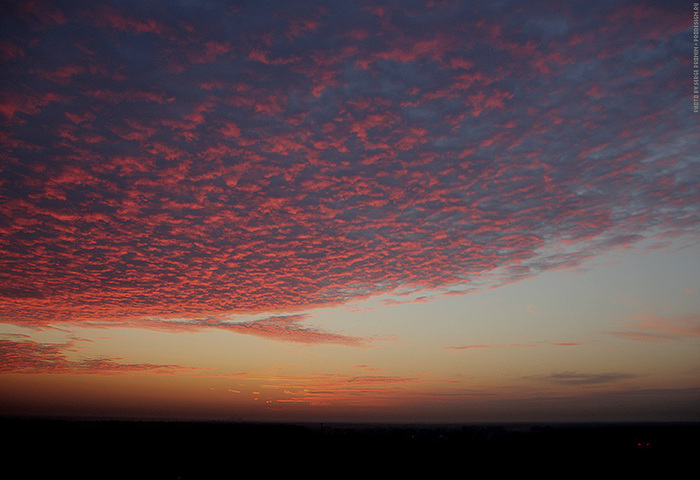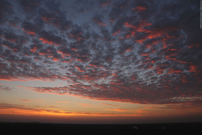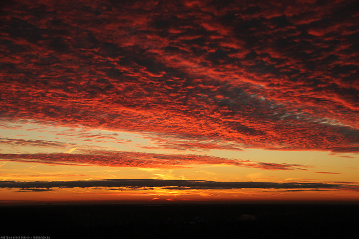 Несколько лет снимал небо «за пять минут до восхода» — самая интересная, на мой взгляд, фаза. Потрясающие облака в огненно-красной гамме, тонкая дрожащая полоска солнца на горизонте, каждое утро разная картина. При съемке через телескоп можно выхватить необычные сцены солнца за шторами облаков, отдельные детали, которые мало бы кто мог представить себе.