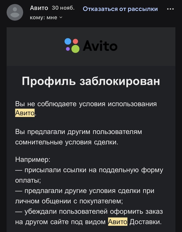 Ощущение такое, что Авито может заблокировать кого угодно без разбору, а потом решить, что разбираться с проблемой — дело уже не первоочередное.