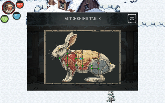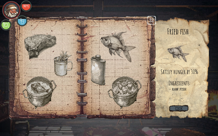 Шкала голода, жажды, мороза (мы ведь на полярной станции) — неотъемлемые части игр подобного жанра. В моей игре всё это тоже присутствует.